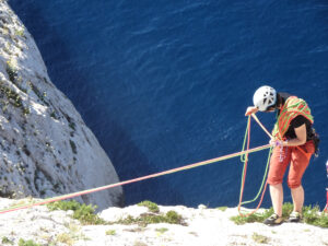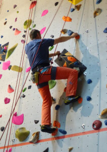 Les cours d’escalade hebdomadaires ont lieu en salle, complétés par des sorties mensuelles en falaise.
